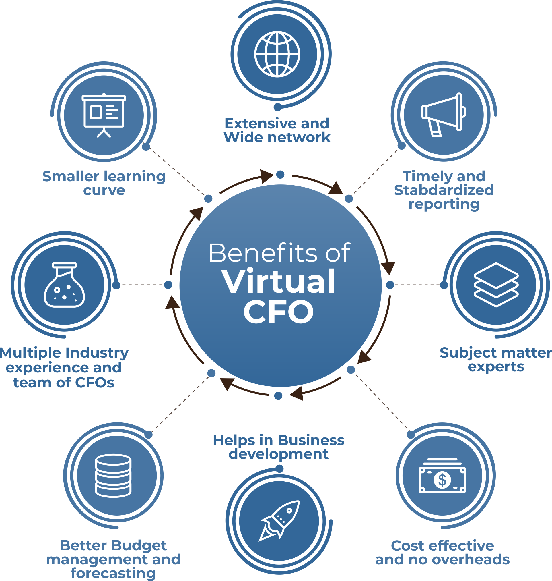 - As a measure of outsourcing, ACCUFIN as a virtual CFO covers all the necessary arenas by analyzing the company's statistics. Supports on the basis of analysis for defining and initiating fresh policies for assuring growth.