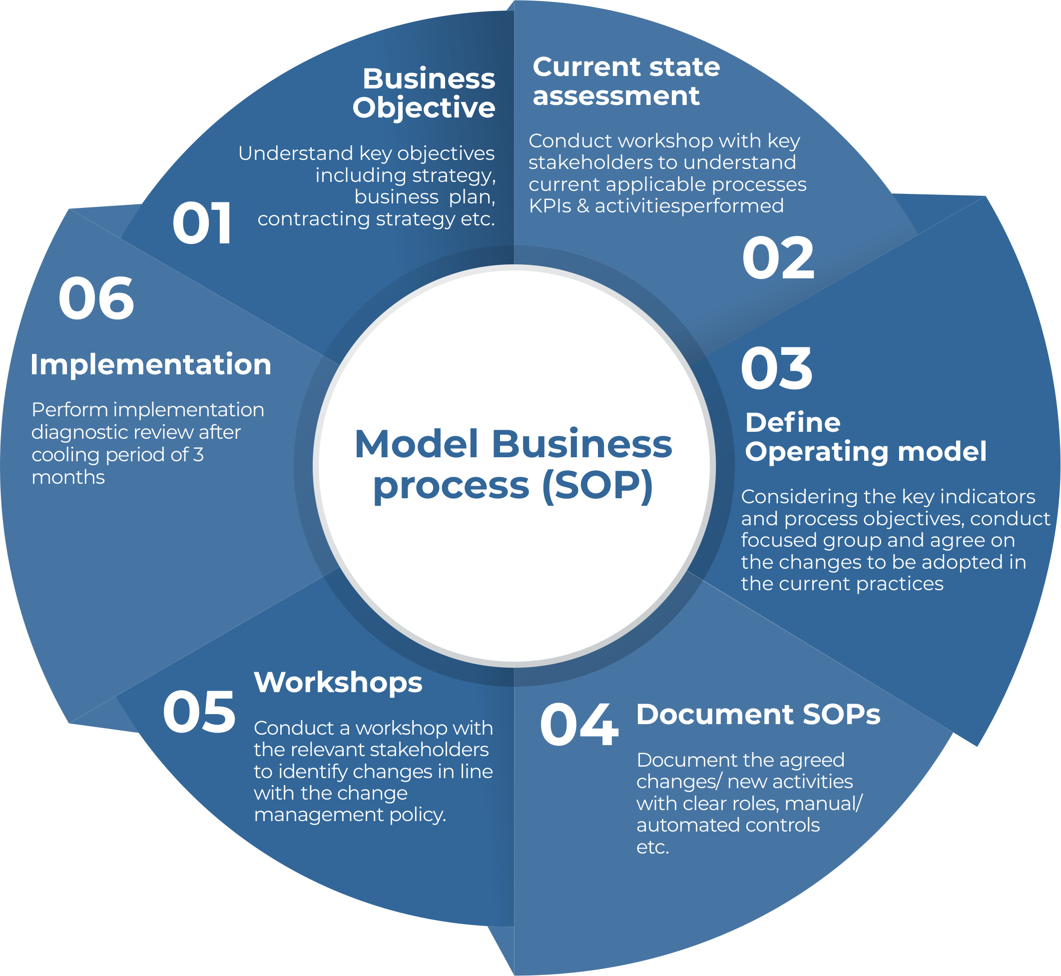 With the in depth understanding of process and industry, we leverage on our enrich experience in developing Model Business process (SOPs).